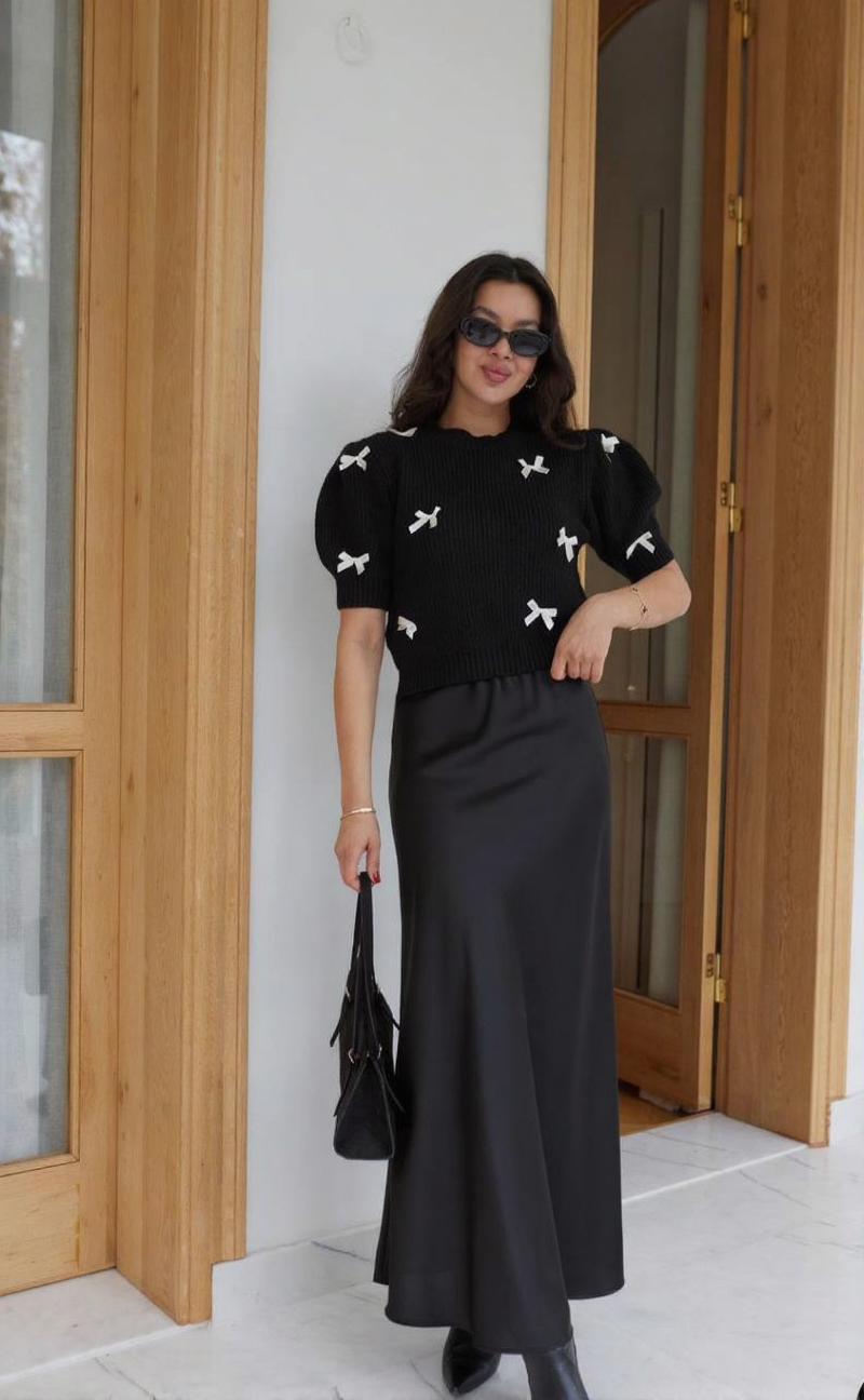 تنورة طويلة بانسيابية جميلة، كتطيح بشكل مثالي على الجسم وكتعطي لوك أنيق ومهذّب بلا مجهود.