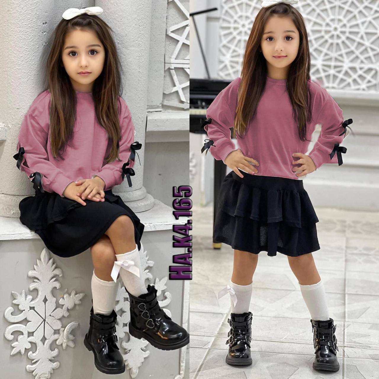 خلّي الأميرات الصغيرات يستمتعوا بإطلالة جذّابة تجمع بين البساطة، الجمال، والراحة مع هاد الطقم البناتي العصري، اللي منسّق بطريقة راقية كتخلي اللوك كامل متناغم وكيوت بزاف.